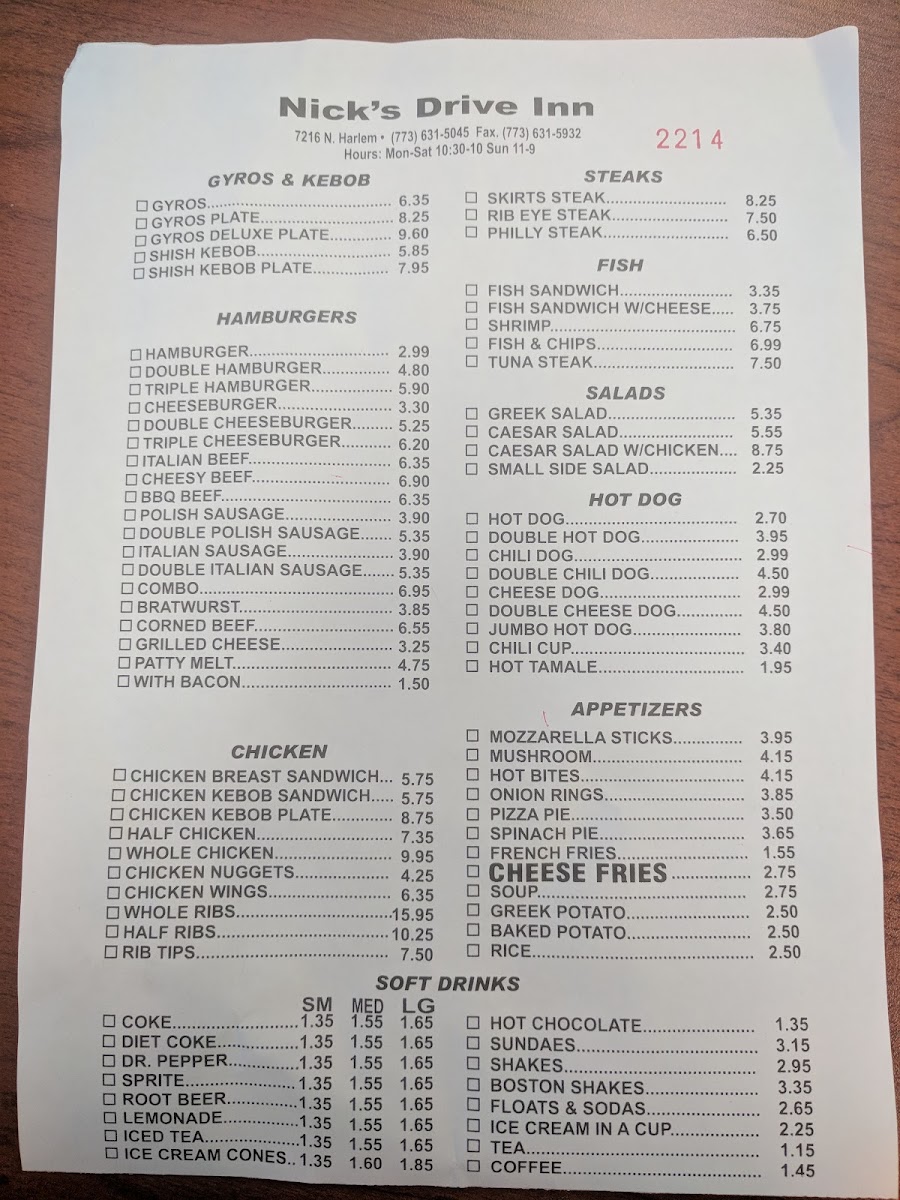 Includes garlic bread and Cole slaw, with a choice of fries or baked potato. Greek potatoes (when available)